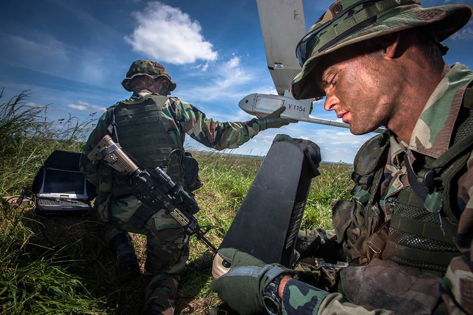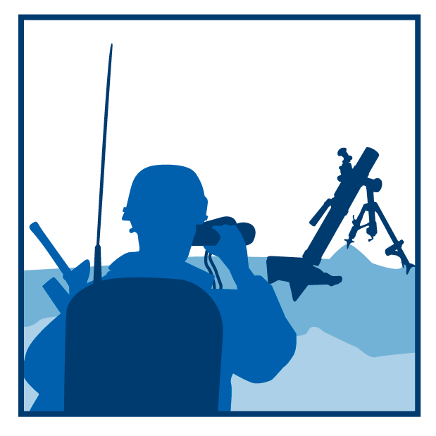 Forward Observer regelt vuursteun vanaf grond (groundbased) en scheepsvuur (naval gun fire). RAVEN, onbemand verkenningsvliegtuigje.
