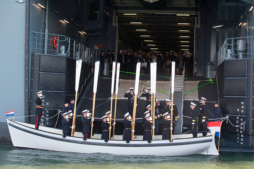 De ceremonie kende nog een verrassingselement. De minister van Defensie reikte admiraal Borsboom de onderscheiding Officier in de Orde van Oranje-Nassau met de Zwaarden uit. “Een Vlootvoogd in hart en nieren”, sprak de minister van Defensie Jeanine Hennis-Plasschaert lovend over de scheidend commandant. “U trad op waar dat moest en als het maar even kon, legde u een arm om de schouder van wie dat nodig had. Uw inzet is van grote waarde geweest. En meer dan dat.”
