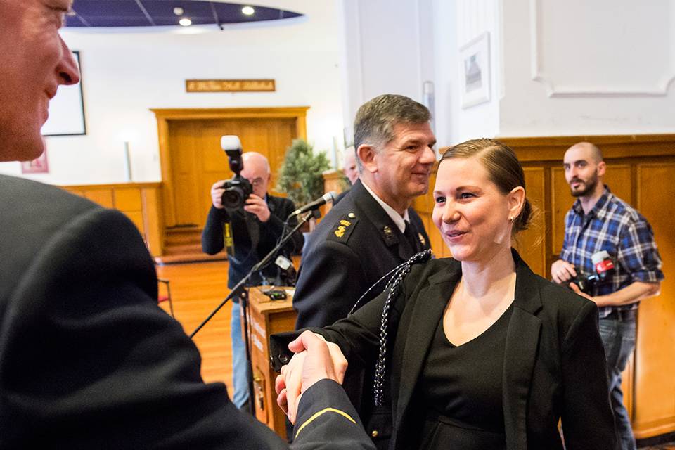 Korporaal Laura Bregman-van Wassenberg heeft zonder dralen een fietser gereanimeerd die onwel was geworden. Zij heeft deze man op deskundige wijze ook eerste hulp verleend totdat de hulpdiensten ter plaatste waren.
