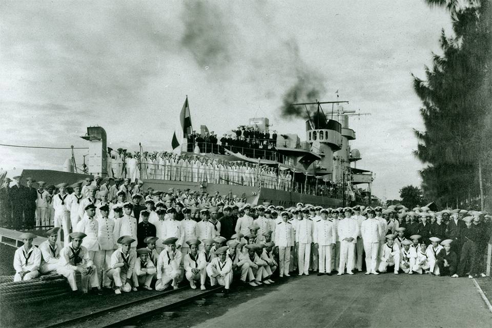 “Ik herinner het me als de dag van gisteren. De ‘Combined Striking Force’ onder commando van schout-bij-nacht Karel Doorman vertrok vanaf de Kruiserkade. Als jong broekie gooide ik destijds de trossen los”, herinnert de nog zeer vitale Kleijn zich levendig. “Nog steeds hoor ik de trompet- en fluitsignalen. En nog zie ik het hijsen en neerhalen van de seinvlaggen. Front maken en doorgaan. Front maken en doorgaan. Daar gingen ze, de zeeslag tegemoet. En we weten nu allemaal hoe tragisch het is afgelopen. Vrienden die ik kende van de ambachtsschool, jongens van het St. Vincentius gesticht. Ik heb ze nooit meer terug gezien…”