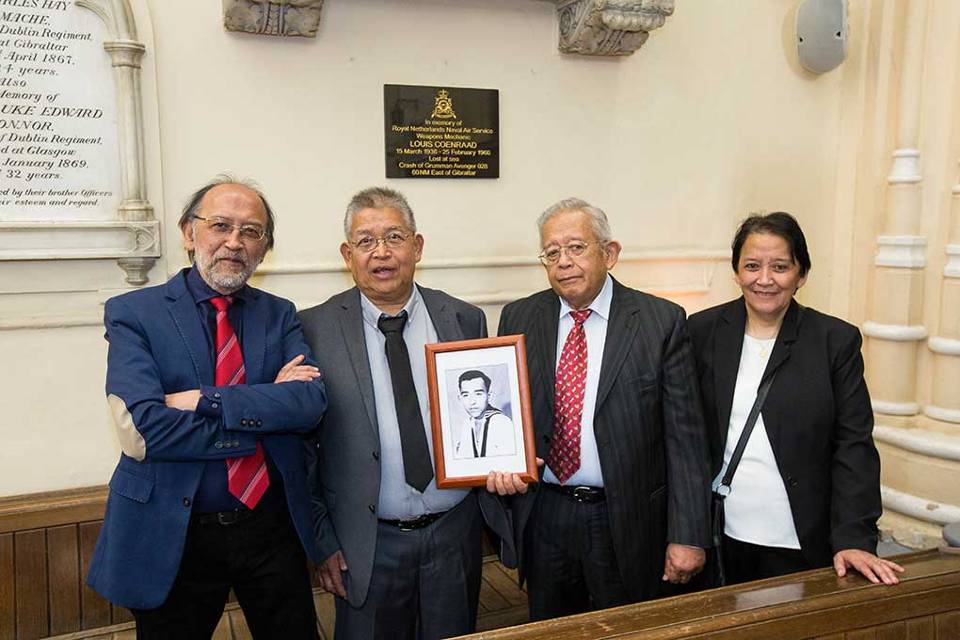Direct na het ongeluk in 1960 vond er een internationale dienst plaats in Gibraltar ter nagedachtenis aan de omgekomen Louis Coenraad. “Wij konden daar toen als familie niet bij zijn. Ons werd verzekerd dat we de foto’s zouden krijgen. Die foto’s mislukten, waardoor we dit nooit konden meebeleven.” Bureau Casemanagement nam daar geen genoegen mee en organiseerde eind vorige maand een reis naar Gibraltar voor de familie Coenraad. Ongeveer op dezelfde locatie als waar het ongeluk 55 jaar geleden gebeurde, vond een uitgebreide ceremonie plaats. Een gedeelte van de delegatie mocht mee aan boord van een Brits schip. Daar werd een rede gehouden en legden de broers en zus van Louis Coenraad een krans te water. De Britse marinebasis dacht actief mee en onthulde ook nog een plaquette. Ter afsluiting werd de delegatie uitgenodigd door de Gouverneur.