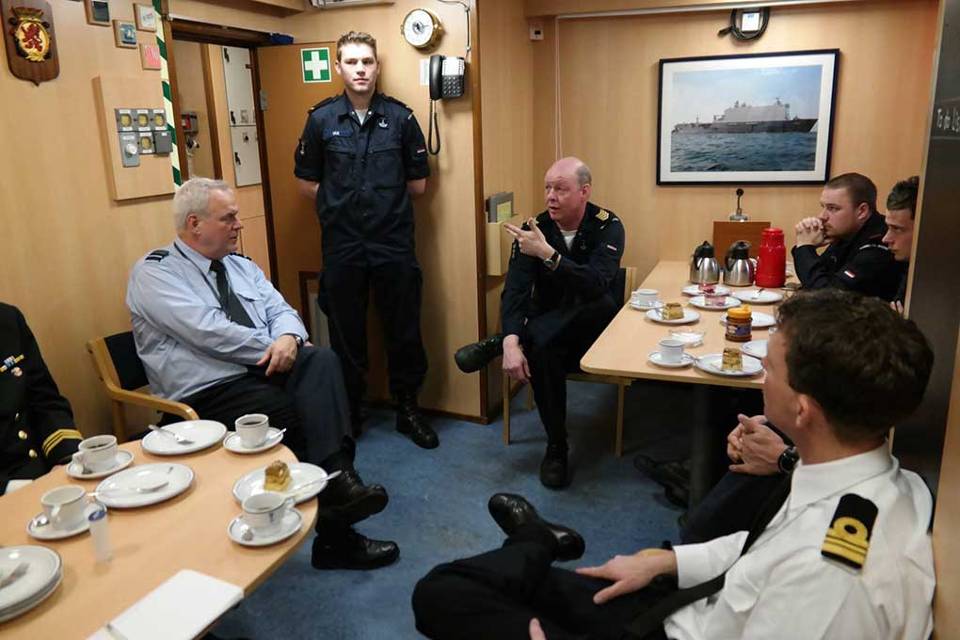 Tijdens zijn werkbezoek aan de Nederlandse mijnenjagers in Zeebrugge ging de Inspecteur-Generaal der Krijgsmacht (IGK), luitenant-generaal Bart Hoitink, in gesprek met de bemanningen van Zr.Ms. Vlaardingen en Zr.Ms. Makkum. Nadat de IGK aan boord was gefloten en zijn IGK-vlag in de top zag van Zr.Ms. Vlaardingen, gaf hij glimlachend grif toe dat hij vroeger zelf ook zeeofficier had willen worden. Met de bemanningen sprak hij onder meer over: opleidingen, arbeidsvoorwaarden en voorlichting, maar ook het gebruik van internet aan boord, het lang van huis zijn en de samenwerking tussen de Nederlandse en Belgische marines.