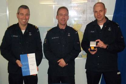 Op Zr.Ms. Van Amstel zijn 2 bemanningsleden in het zonnetje gezet vanwege hun lange dienstverband. AOO ODVB Sjaak Koman kreeg zijn diensttijdgratificatie voor 35 jaar eerlijke en trouwe dienst. SMJRODVB Jos Polak ontving een zilveren medaille voor 24 jaar eerlijke en trouwe dienst.