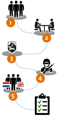 2.   De verschillende squadrons zitten om de tafel en doorlopen alle afspraken en processen die voor hun van toepassing zijn.