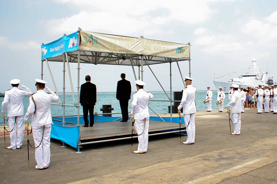 200 jaar Koninkrijk en 350 jaar Korps Mariniers. Twee mooie aanleidingen voor het kabinet van de gouverneur van Aruba om dit jaar een groots evenement te organiseren. Daarvoor kozen zij het eerste weekend van mei. Geen toeval, want dan vindt traditioneel de Open Dag van Marinierskazerne Savaneta plaats. Er ontstond een indrukwekkende fusie. Sail Aruba trok tienduizenden bezoekers, die genoten van al het spektakel dat te zien en te doen was in het mariniersdorp. Tokkelen van een hoge toren of juist een toren beklimmen, afleggen van een hindernisbaan of met een wapen op de foto. Ze konden een voet zetten aan boord van het stationsschip in de West, Zr.Ms. Zeeland en bekeken spectaculaire demonstaties van Kustwacht en marine op land en op zee. Het evenement werd zelfs getrakteerd op hoog bezoek: Koning Willem-Alexander en Koningin Maxima.