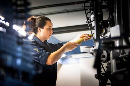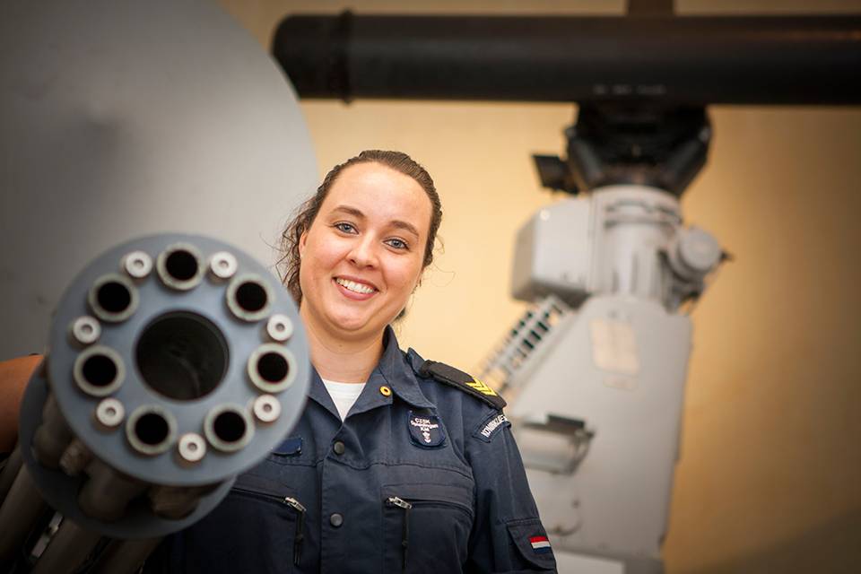 “Er zitten weinig vrouwen bij de Technische Dienst, dat vind ik wel jammer. Een andere vrouwelijke sergeant en ik zijn momenteel de enige (storings)monteurs voor de Goalkeeper. Terwijl het een prachtige baan is waar je zoveel kanten op kunt. Ik ben vorig jaar moeder geworden en het is prima te combineren.”