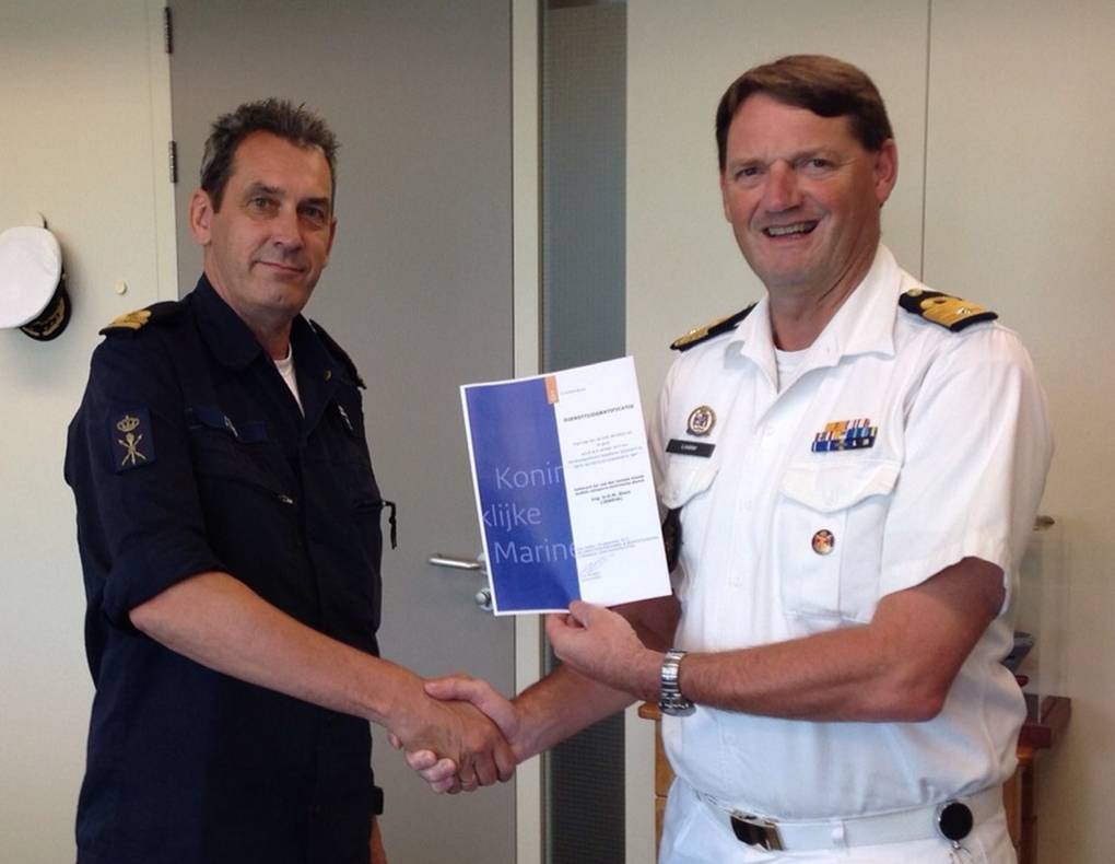 LTZ 2OC (TD) Udo Stam ontving op 6 oktober een diensttijdgratificatie voor 35 jaar ‘langdurige, eerlijke en trouwe dienst’. Stam begon zijn carrière in 1980 als wapenelektronicamonteur. Na een aantal varende plaatsingen, maakte hij in 1987 de overstap naar het IV/ICT-domein. Momenteel is hij betrokken bij het (SAP-) project Zeeketen, met name voor het bouwen en uitvoeren van migratietesten. Waarom hij het al zo lang volhoudt bij de KM? “De veelzijdigheid van functies spreekt mij heel erg aan; iedere paar jaar doe je weer iets anders. Niet alleen het werk op zich, maar ook de werkomgeving varieert constant. Zo werkte ik bijvoorbeeld ook bij ‘burger’-Defensiebedrijven, zoals CAWCS (het huidige Force Vision), de kustwacht, DCIVB en IVENT.” Wat er vooral veranderde in 35 jaar tijd? “Ik bemerk een steeds sterker wordend individualisme; dat vind ik minder.”