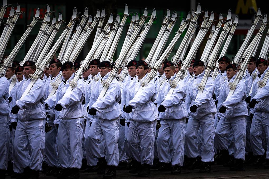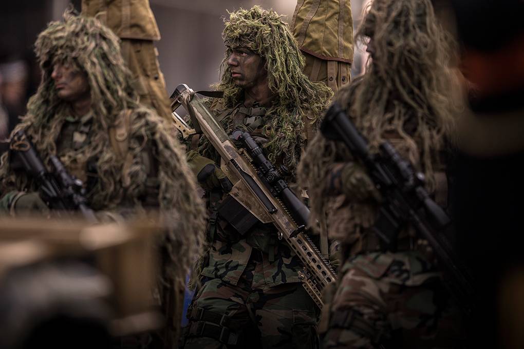 Ook de specialisaties van het Korps passeren, zoals hier de snipers.