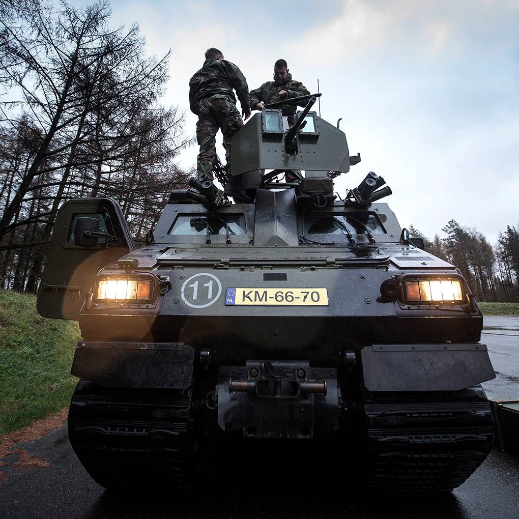 “Wapens laden”, kraakt een stem op het communicatiesysteem van de NAVO-schietbaan Bergen-Hohne in Duitsland. Als roofdieren die hun prooi beloeren, ratelen Viking-pantservoertuigen van het Korps Mariniers door het bruin golvende landschap. Vanuit hun koepel schieten mariniers van 24 Combat Support Squadron met .50-mitrailleurs op doelen. De atmosfeer is zwanger van het lood. Dan volgt de klap op de vuurpijl: een schot met het Gill-antitankwapen. Voor het eerst en voor het laatst dit jaar.