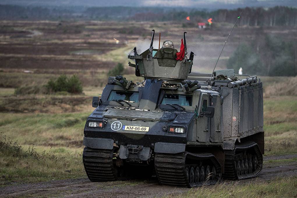Een Viking-voertuig wordt gereedgemaakt voor de schietoefening op het immense NAVO-schietterrein Bergen-Hohne.