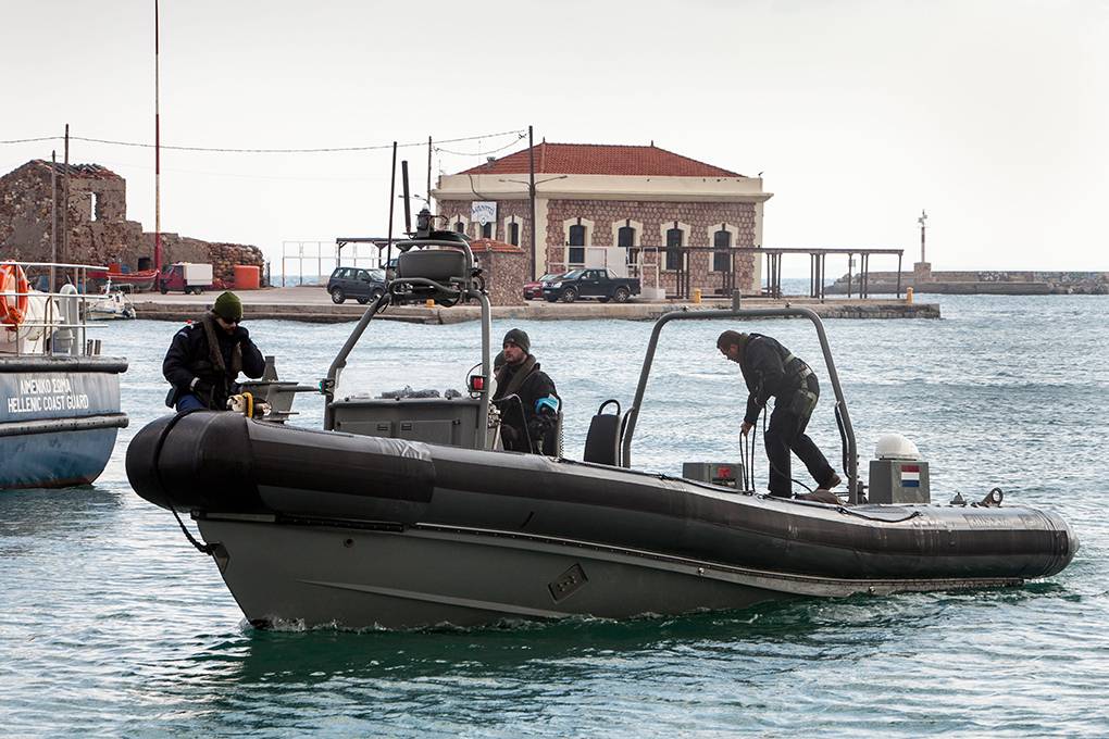 “We hebben binnen het Border Security Team (zie kader) een ondersteunende rol”, vertelt Siemelink over de samenwerking met de marechaussee. “Met onze FRISC’s zorgen wij dat de marechaussee de grensbewakingstaken op zee kan uitvoeren. Ook hebben we altijd iemand van de Griekse kustwacht aan boord. Zij hebben de leiding, onderhouden het contact met de wal en bepalen wat we doen. 8 uur per dag patrouilleren we op zee. Buiten die uren moeten we binnen 10 minuten operationeel kunnen zijn.”