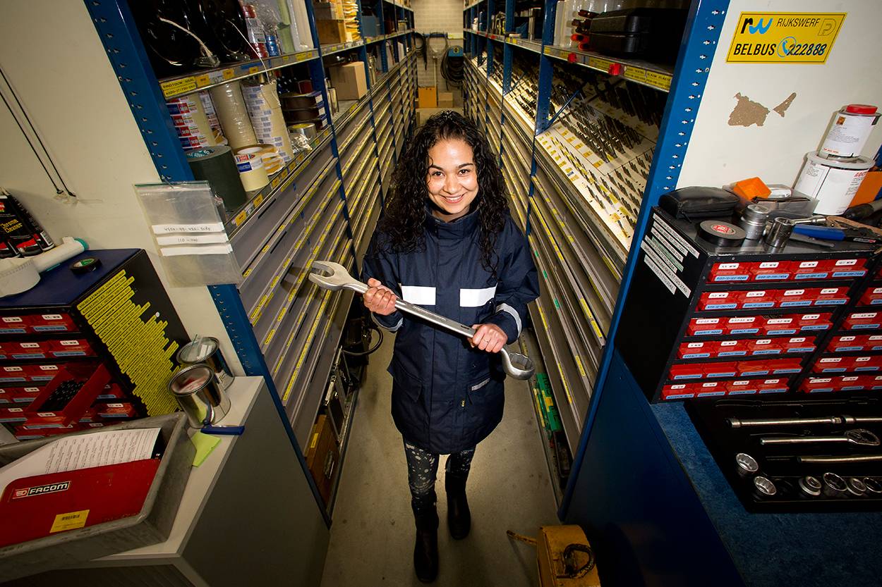 “Ik werk in een magazijn op de Marinebasis Den Helder. Werknemers kunnen gereedschap bij mij ophalen en inleveren. Ik werk hier met een beheersysteem op de PC. Ik ben vorig jaar begonnen met een opleiding Logistiek. Het werk bevalt goed, het is echt leuk hier. Ik heb veel aanspraak met collega’s en de tijd gaat snel. Hiervoor had ik niks; ik zat 2 jaar thuis met een uitkering en deed zo nu en dan schoonmaakwerk. Via het UWV ben ik hier gekomen en heb ik een logistiek traject gevolgd, zowel theorie als praktijk. Ik heb onder meer een heftruckcertificaat behaald. Ook krijg ik onder andere les in Nederlands en rekenen op het ROC in Den Helder. Je moet alles halen, anders houdt het op. Bij andere opleidingen ging de leerstof te snel. Hier komt elke week een coach kijken of je begeleiding nodig hebt. Deze zomer loopt mijn contract af. Ik hoop dat ik kan blijven.”