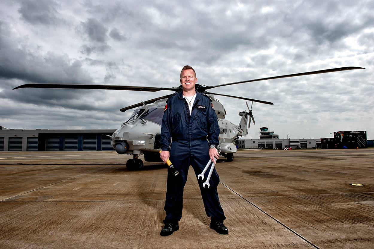 Begonnen als infanterist bij het Korps Mariniers, overgestapt naar de verbindelaars, om uiteindelijk zijn roeping te vinden als mechanisch monteur van de maritieme gevechtshelikopter NH90. “Ik ga iedere dag met een brede glimlach naar mijn werk”, zegt Leon. “En dan te bedenken dat ik bijna de dienst uit ben gegaan. Ik had het gevoel dat ik mijn passie voor techniek niet binnen de organisatie kwijt kon, maar toen kwam dit op mijn pad. En nu heb ik het geluk dat ik dagelijks aan een NH90 mag sleutelen.”