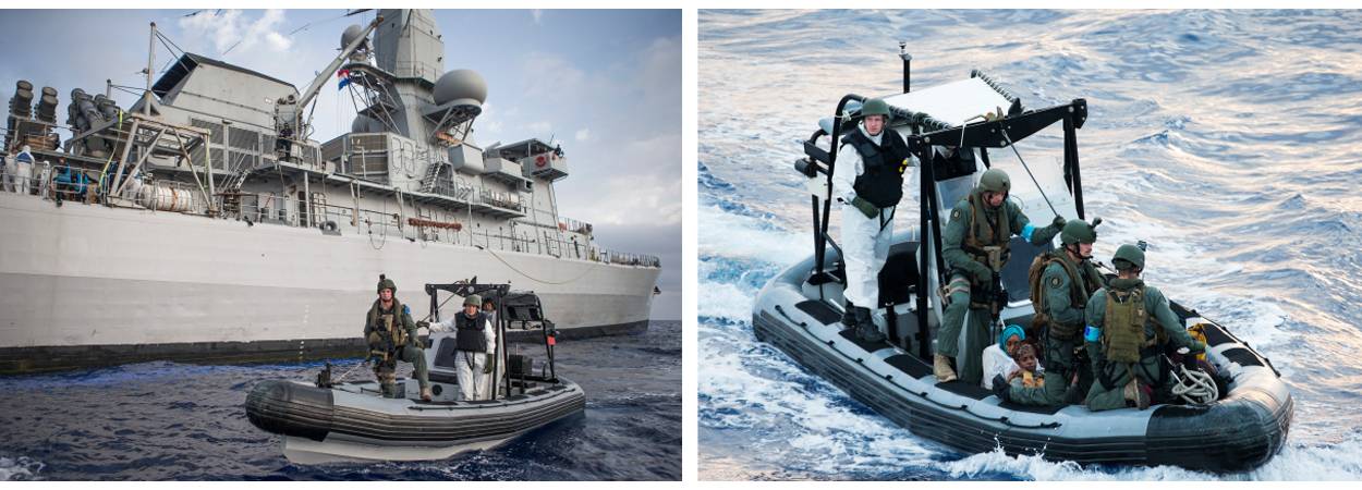 Dat de migranten veilig aan boord konden komen van de Van Amstel, was vooral het werk van mariniers van het 23e Raiding Squadron. Zij hielden zich tijdens operatie Poseidon (Egeïsche Zee) en de eerste week van Triton (Middellandse Zee) vooral bezig met oefenen. “Trainen in tactiek, schietvaardigheden, medische handelingen en de vorming van ‘guardteams’ die de bootjes met migranten als eerste benaderen”, vertelt sergeant van de mariniers Paul. “Toen eenmaal het teken was gegeven dat we daadwerkelijk in actie moesten komen, gingen de oogjes wel glinsteren.”