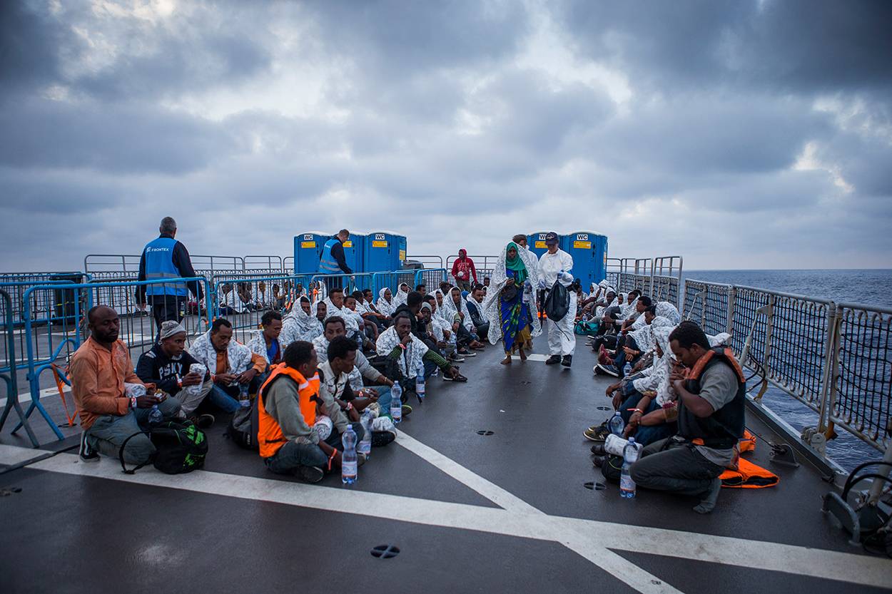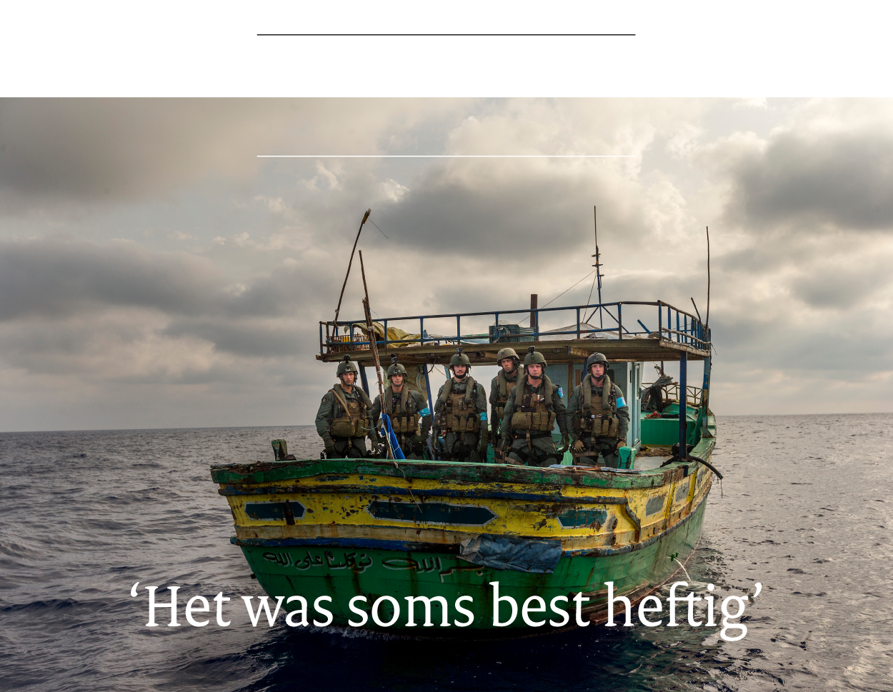 “Wat ten slotte blijft hangen”, zegt marinier 1 Sander, “is dat we veel mensen van een smerig en zinkend schip hebben gehaald. Het proces wat daaraan vooraf is gegaan of wat er met deze mensen gebeurt nadat ze zijn afgezet, daar gaat het bij ons werk niet om. We hebben levens gered, waaronder dat van de zwangere vrouw die aan boord is bevallen en van haar kind. Daar doe je dit voor.”
