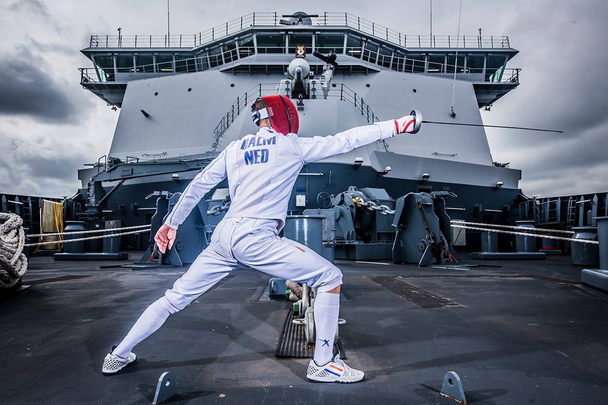 Dalm heeft de smaak te pakken en gaat zich nu richten op deelname aan de Olympische Moderne Vijfkamp, waarvan schermen deel uit maakt. Veel concurrentie uit KM-hoek heeft Dalm wat dat betreft niet te duchten. Hij is namelijk de enige schermer binnen de marine die deelneemt aan (inter)nationale wedstrijden. “Om wedstrijden te kunnen houden zou het mooi zijn als anderen binnen de KM deze sport ook bedrijven. Heel Defensie telt overigens ook maar een 10-tal actieve wedstrijdschermers. Hebben mensen interesse, dan kan ik ze zeker aanraden om contact op te nemen met de KMSV!”