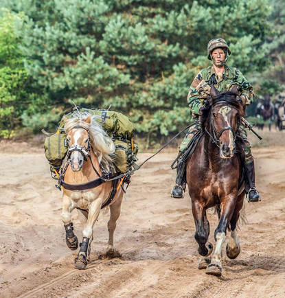 De Militaire Prestatie Tocht Te Paard (MPTTP) vond onlangs plaats op de Harskamp en de Hoge Veluwe. Het evenement, waarbij man en paard gezamenlijk een parcours met opdrachten afleggen, trekt ieder jaar meer aandacht. Dit keer kwamen 172 combinaties, van 20 teams, aan de start. Onder de deelnemers ook een groot aantal CZSK-militairen. Sommigen sloten zich aan bij teams van hun functionele organisatie, zoals het Militair Huis. Anderen sloten zich individueel bij andere teams aan. CZSK zelf bracht 2 teams aan de start. Eén daarvan was de lastdiergroep, geleid door KAPTMARNS Melle van Schaijk. Het team bestond verder uit 6 marinier-begeleiders, die 5 volledig tactisch bepakte paarden meevoerden. Van de mariniers waren 4 man reservist en 2 man ‘wounded warrior’, te weten Casper Voermans en Eric van der Velzen. Ook zij legden het parcours van 20 kilometer lopend af, met de lastdieren aan de hand. Een prestatie van formaat! Ook de bereden groep van CZSK oogstte veel waardering. Het team vormde één van de grootste groepen (13 ruiters) die het 35 kilometer-parcours aflegden. De actief-dienende mariniers en CZSK-reservisten legden het traject over de Hoge Veluwe volledig bewapend af, tevens voorzien van gevechtsuitrusting en tactische helm. 2 extra lastdieren droegen de derde lijn-uitrusting. De organisatie waakte over de gezondheid van de paarden. Vooraf voerde een hoefsmid een controle uit en tijdens de rit gebeurde dat tot 3 keer toe door een veearts. Hierdoor konden alle paarden na een fantastische buitenrit gezond huiswaarts keren.
