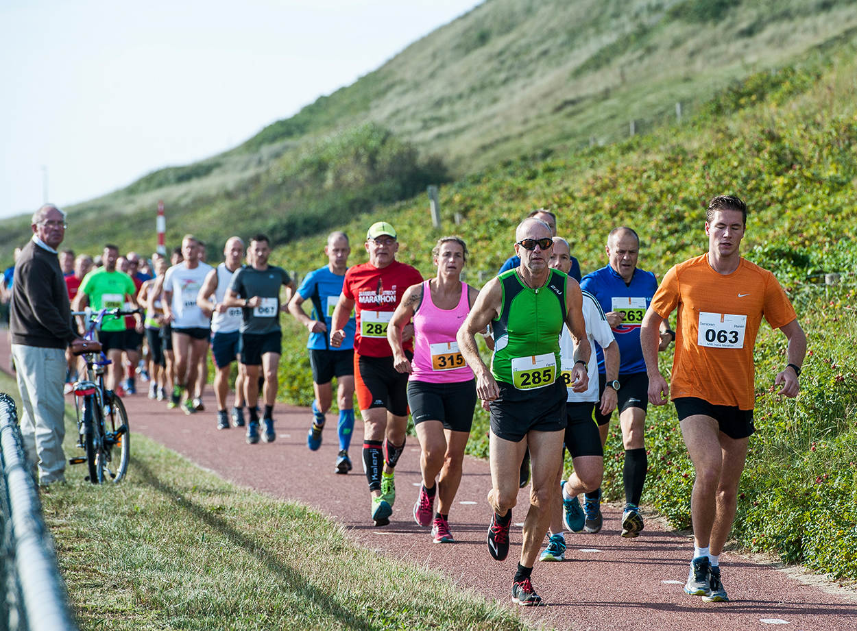 Ruim 100 deelnemers meldden zich 28 september jongstleden voor het NMK Halve Marathon op Marinekazerne Erfprins. De start vond ook dit jaar weer plaats in Callantsoog; de deelnemers werden daar met de bussen naartoe vervoerd. 11.00 uur precies klonk het startschot en werd er met een hoog tempo naar het fietspad langs de duinen gelopen. Met een paar stijgingen en de wind in de rug kwam de kopgroep heel snel voorbij het 5 kilometer-punt. Hier stond de eerste verzorgingspost gereed, om deelnemers van water, limonade of bananen te voorzien. De lopers oogden fris en streden hard voor de koppositie. Bij het 15 kilometer-punt was er een behoorlijke gat geslagen tussen hen en de overige lopers. In deze laatste kilometers zaten nog enkele lastige klimmetjes voor de deelnemers de finish in zicht kregen.