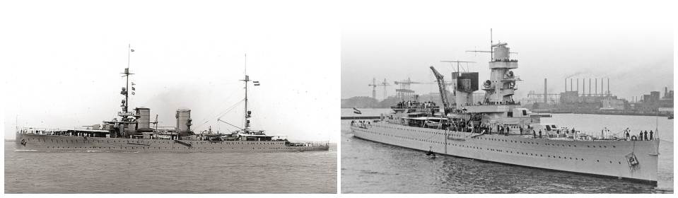 De kruisers Hr. Ms. Java (links) en De Ruyter.