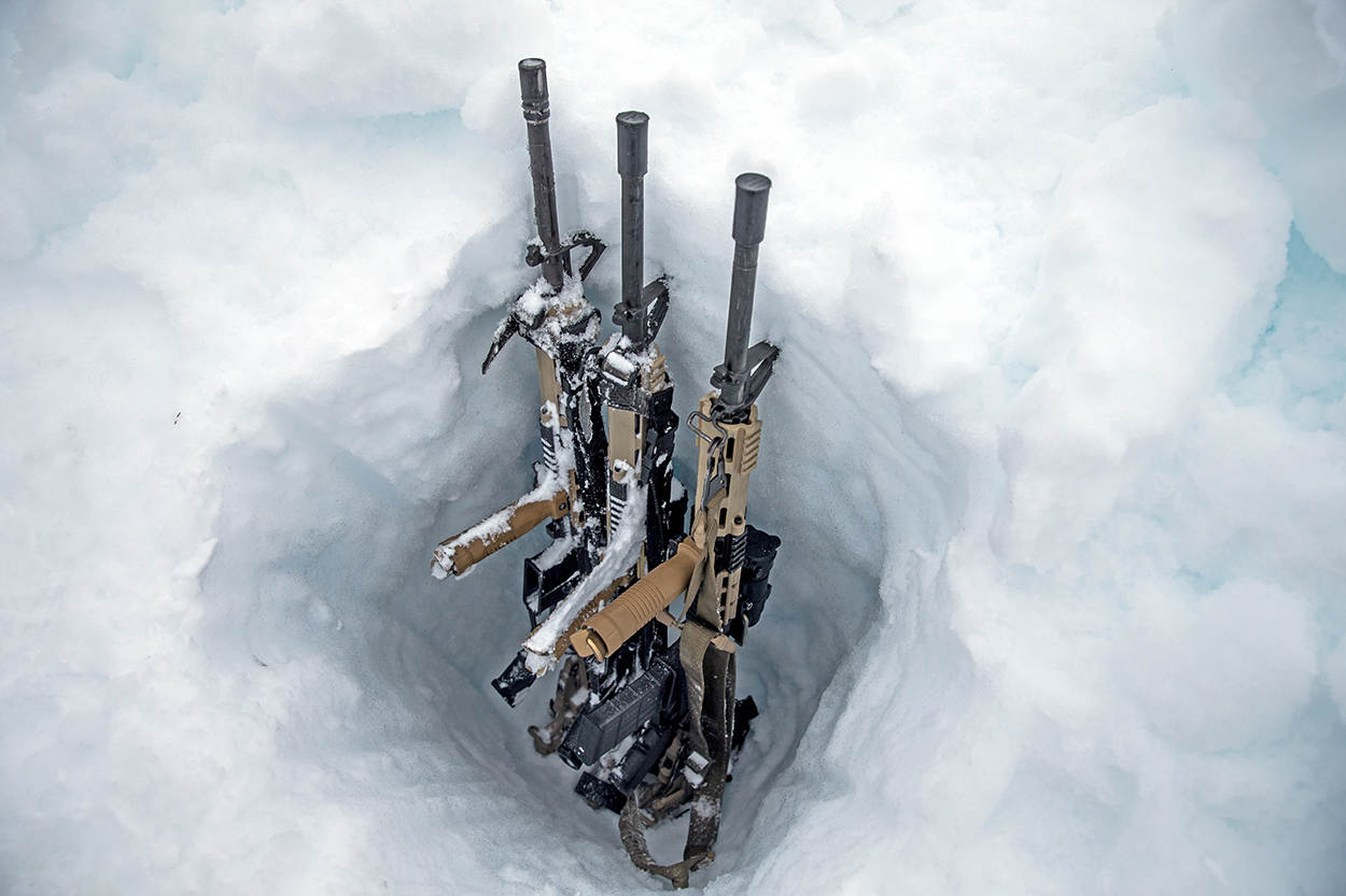 De mariniers maken flink wat meters, letterlijk en figuurlijk. In de laatste week van de novice-fase gebeurde dat onder beduidend minder arctische omstandigheden. Overdag piekt de temperatuur op 6 graden boven het vriespunt. Regen verandert sneeuw in papperige prut. Dooiende en ’s nachts weer opvriezende hellingen transformeren tot linke ijsplaten.