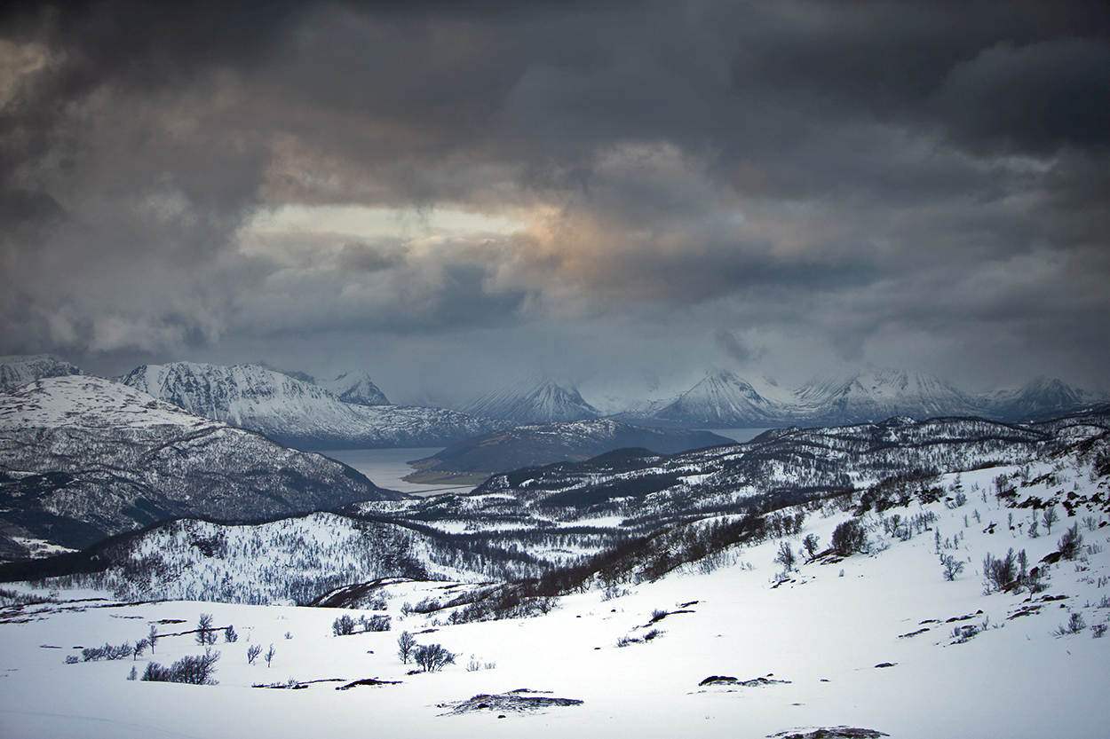 Het Noorse panorama vanuit de sneeuwonderkomens.