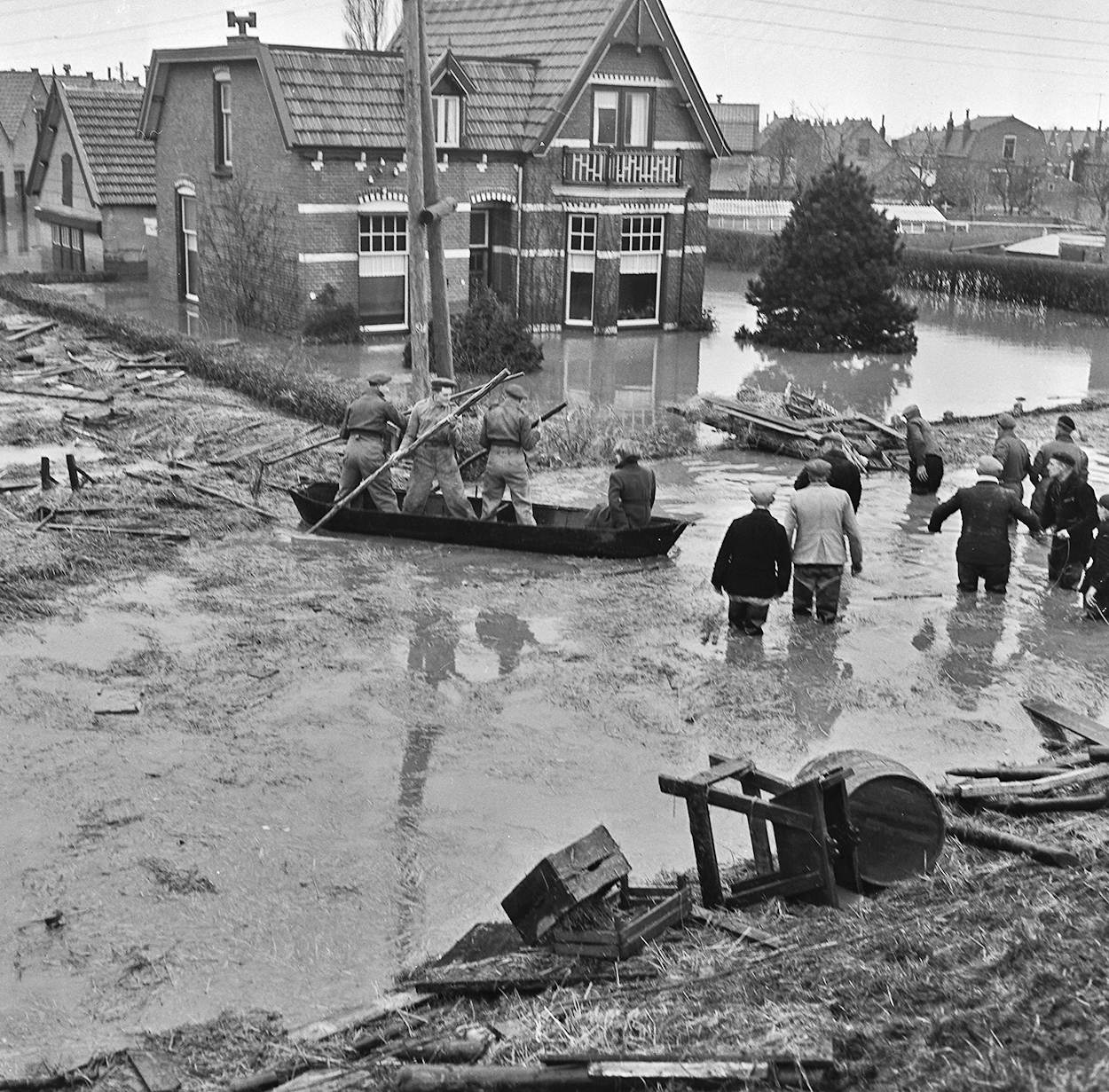 “Bij de Watersnoodramp van 1953 kregen we het verzoek om met Jezebel, zoals we bij de MLD onze S-51 helikopter hadden gedoopt, te gaan kijken of wij konden helpen. Vanwege de zware storm konden we er helaas niet meteen op af, want Jezebel kon die zware windstoten niet verwerken. Pas de volgende ochtend gingen we op weg naar Zeeland. We hadden niet veel informatie, wel dat het goed mis moest zijn. Toen we bij Hoek van Holland waren aangekomen, was er haast niets te zien, behalve water, met hier en daar een paar boomtoppen en daken, waar mensen op zaten. Jezebel was uitgerust met een lier, die helaas niet meer dan 100 kilo kon torsen. Een van de mecano's, sergeant Bogert, had speciaal een canvas lus van een parachuteharnas gefabriceerd. Op die lus stond met zwarte letters geschreven ‘onder de oksels’. Zo hebben we ongeveer honderd mensen kunnen redden met onze enige Nederlandse helikopter. De befaamde ‘Lus van Bogert’ heb ik vele jaren in mijn bezit gehad en bevindt zich thans in de Traditiekamer van de MLD.”
