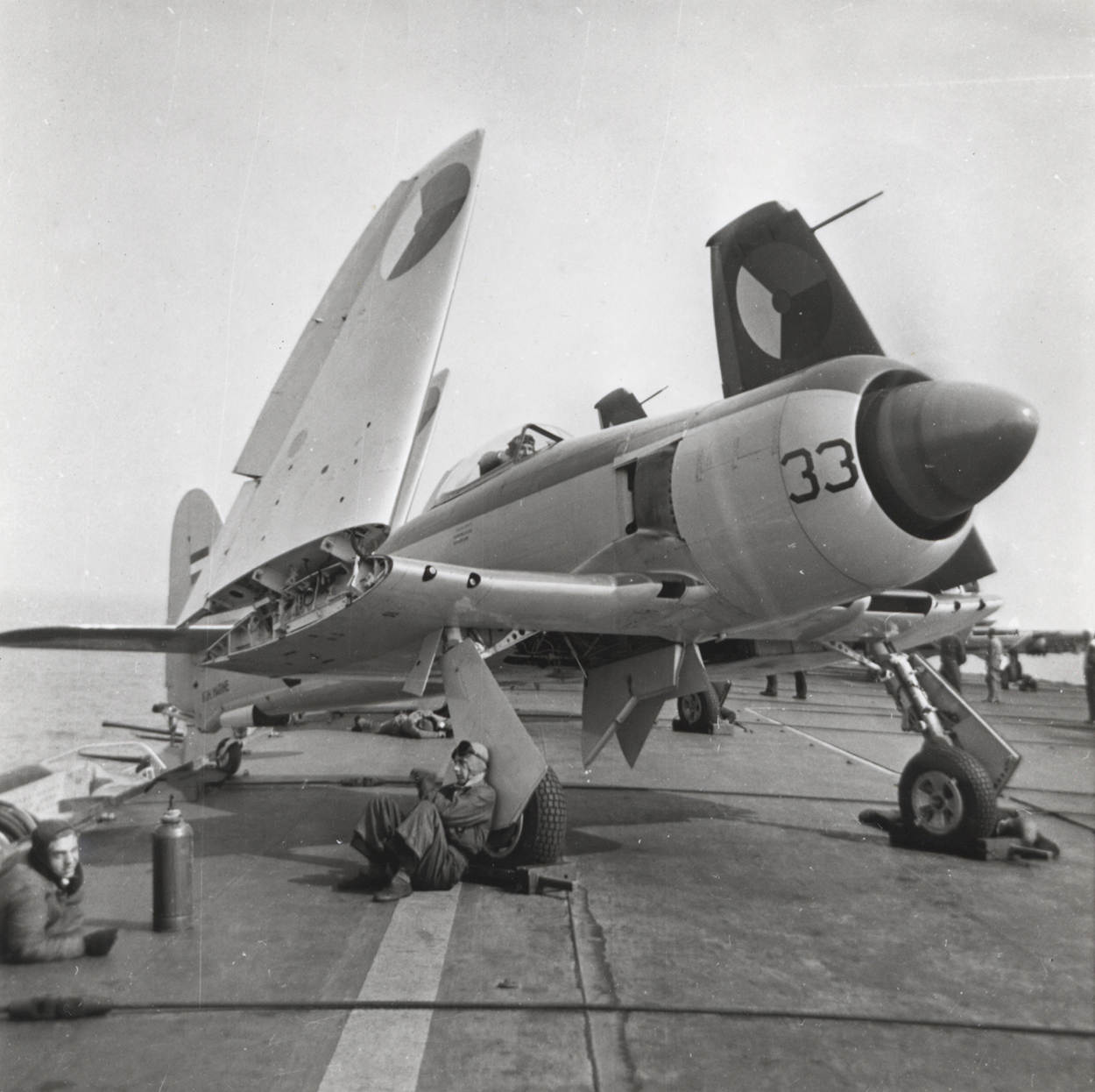 “Het deklanden viel mij niet mee. Ik had als handicap dat ik juist als ervaren vlieger moeite had om de aanwijzingen van de batsman min of meer blindelings op te volgen. Mijn probleem was vooral die griezelige lage snelheid van zo'n 90 knopen aan het einde van het circuit, vlak boven zee. Ik hield graag zelf een oogje op mijn snelheidsmeter in plaats van mij geheel aan de batsman ‘over te geven’. Het gevolg was dan vaak dat ik eigenlijk te snel aan dek kwam, wat mij dan keer op keer op een reprimande kwam te staan. Volgens de statistieken kon je met de Sea Fury rekenen op een gemiddelde van 1 crash in the barrier per 160 deklandingen. Bij mijn 25ste was het echter al raak en had ik mijn eerste barrier binnen. Toen was ik opeens genezen en begon ik pas echt te genieten van dit 'hogeschool'-vliegen.”