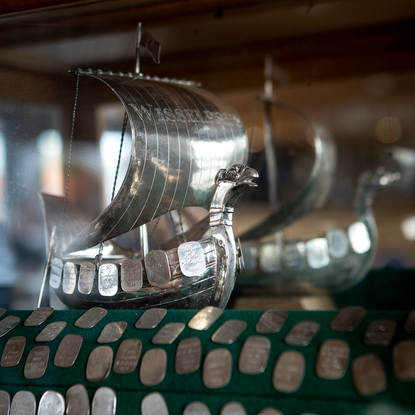 De winnaar van het OMK ontvangt de traditionele wisselprijs, het zilveren Vikingschip.
