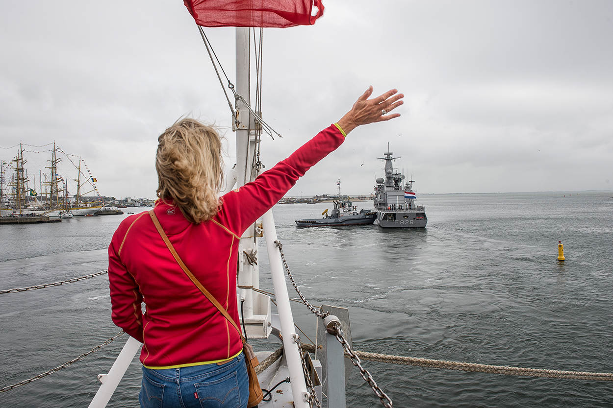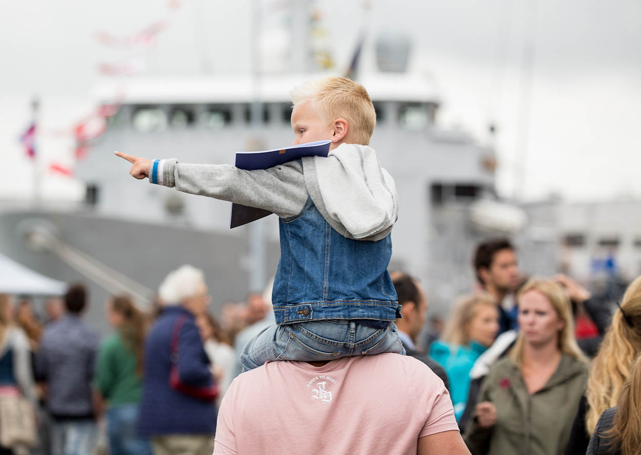 “Zijn jullie wel eens gezonken?” Met een ernstig gezicht kijkt de 8-jarige Ramon naar matroos 1 Evert Schilder. Op de brug van Zr. Ms. Karel Doorman schudt de matroos lachend zijn hoofd. “Ben je achter smokkelaars aangegaan?”, vervolgt de jongen. “En waar zijn al deze knopjes voor?” Vragen genoeg tijdens Marinedagen/Sail Den Helder 2017. Het laatste weekend van juni bezochten zo’n 350.000 mensen de Nieuwe Haven in Den Helder voor dit meerdaagse evenement.