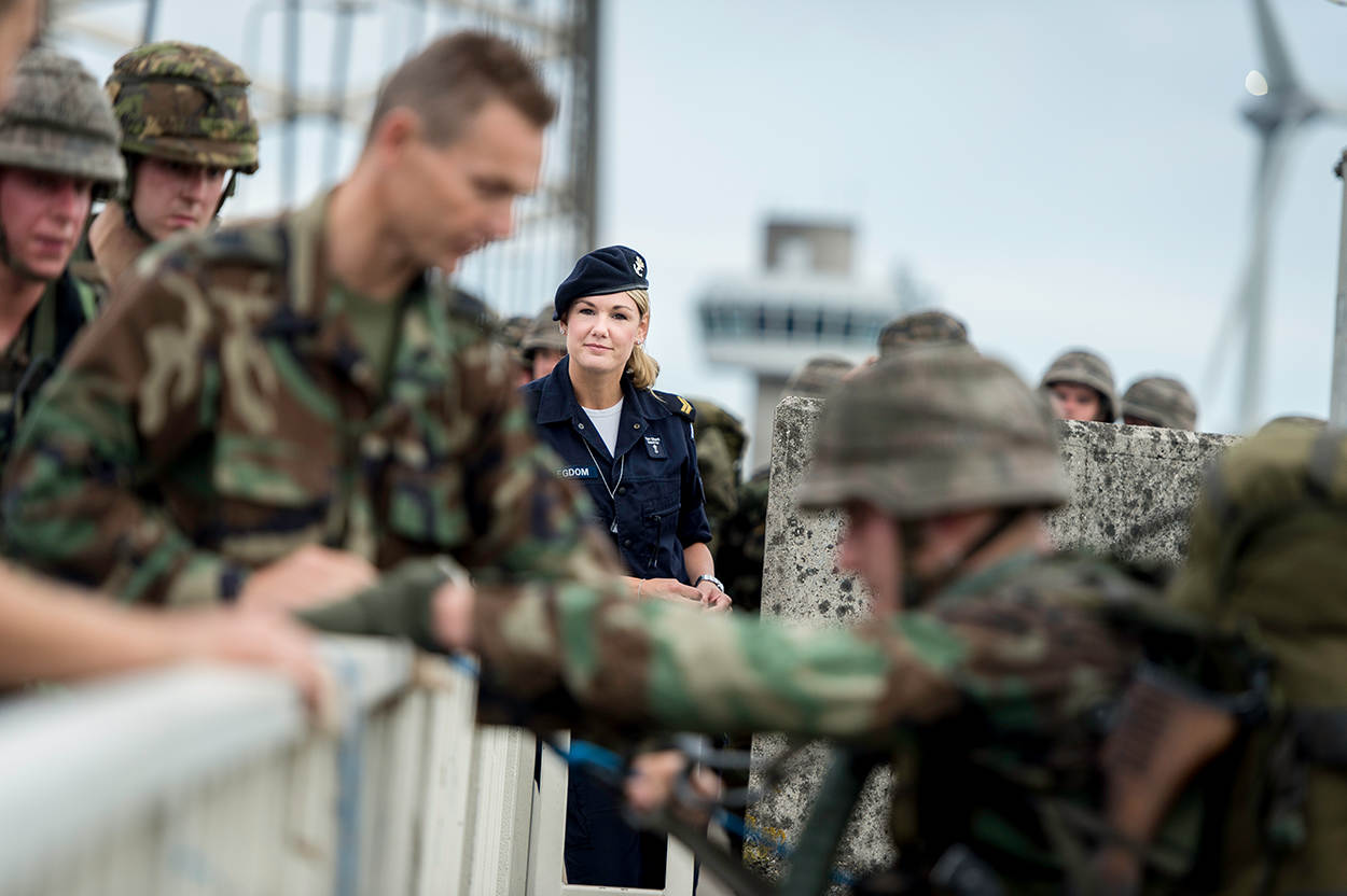 Een paar jaar later veranderde alles, toen ze een oude vriendin tegenkwam op vakantie. Die werkte als militair verpleegkundige bij het varende krijgsbedrijf. “Dat heeft m’n ogen geopend. Er bleken binnen de administratie ook mogelijkheden voor mij. Dat was de perfecte combinatie. Het is een echte kantoorbaan, maar hier vind ik meer actie en avontuur dan bij welk ander bedrijf ook. En waar mag je nu sporten in de baas z'n tijd!”