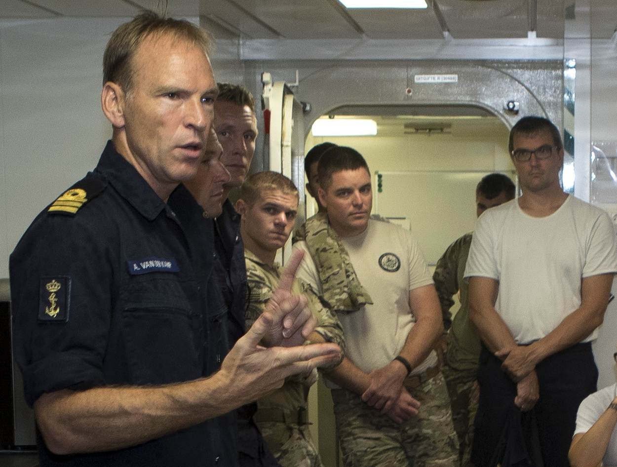 KLTZ Van der Kamp licht de bemanning van de Zeeland in over de stand van zaken van de hulpverlening.