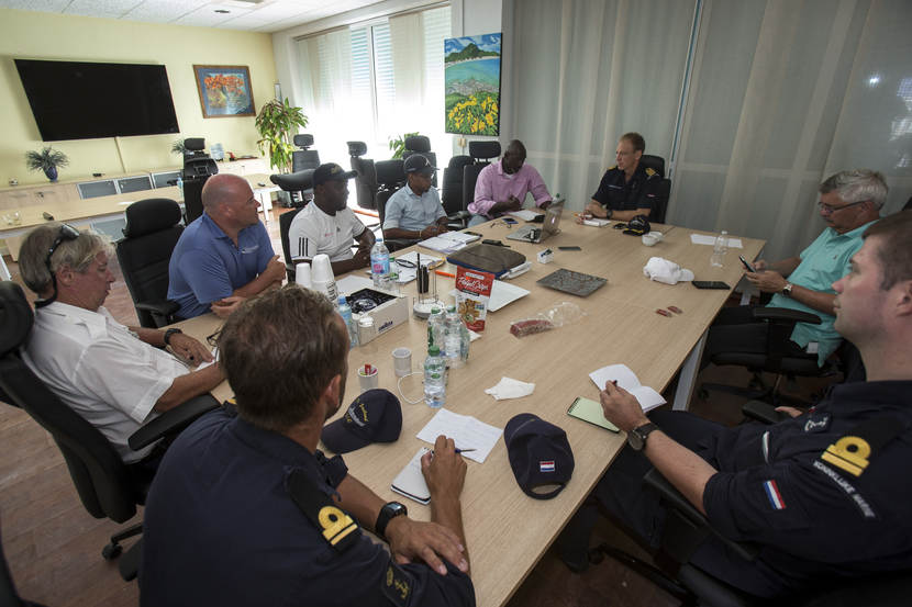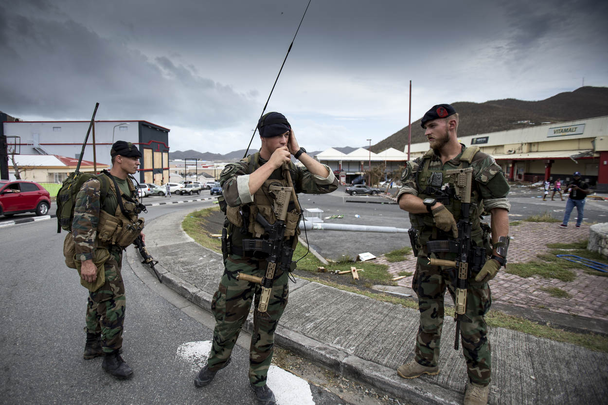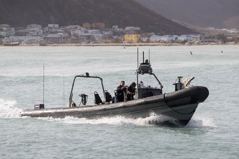Op dat moment hebben het patrouilleschip Zr. Ms. Zeeland en het ondersteuningsschip met strategische transportcapaciteiten Zr. Ms. Pelikaan – beide met hulpgoederen – al aangelegd in de haven van Philipsburg. Maar niet voordat er per FRISC een zoekslag plaatsvindt in de haven, om te checken of er geen grote voorwerpen door de storm op de bodem terecht zijn gekomen. De NH-90 boordhelikopter van het Defensie Helikopter Commando heeft de avond tevoren al de schade op het eiland ingeschat vanuit de lucht.