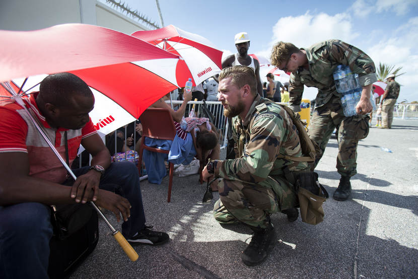 ‘Waar moet je beginnen?’, is het eerste wat mensen zich afvragen bij het zien van de ordentelijke puinhoop die Irma veroorzaakte. Binnen de resten van het chique Sonesta Hotel staan gasten plichtsgetrouw uit te checken, terwijl mariniers de omgeving in zich opnemen. Een surrealistisch schouwspel. “‘Surrealistisch’, dat is volgens sergeant-majoor van de mariniers Matthieu Kempf ‘het woord van de week’. De majoor is zelf geplaatst op Sint-Maarten en raakte zelf zijn huis kwijt. “Ook veel vrienden en bekenden zijn getroffen, huizen zijn verwoest, winkels leeggeroofd. Mijn gezin is geëvacueerd naar Curaçao. Ik kan mij zo op mijn werk richten; er is erg veel te doen.” Een understatement.