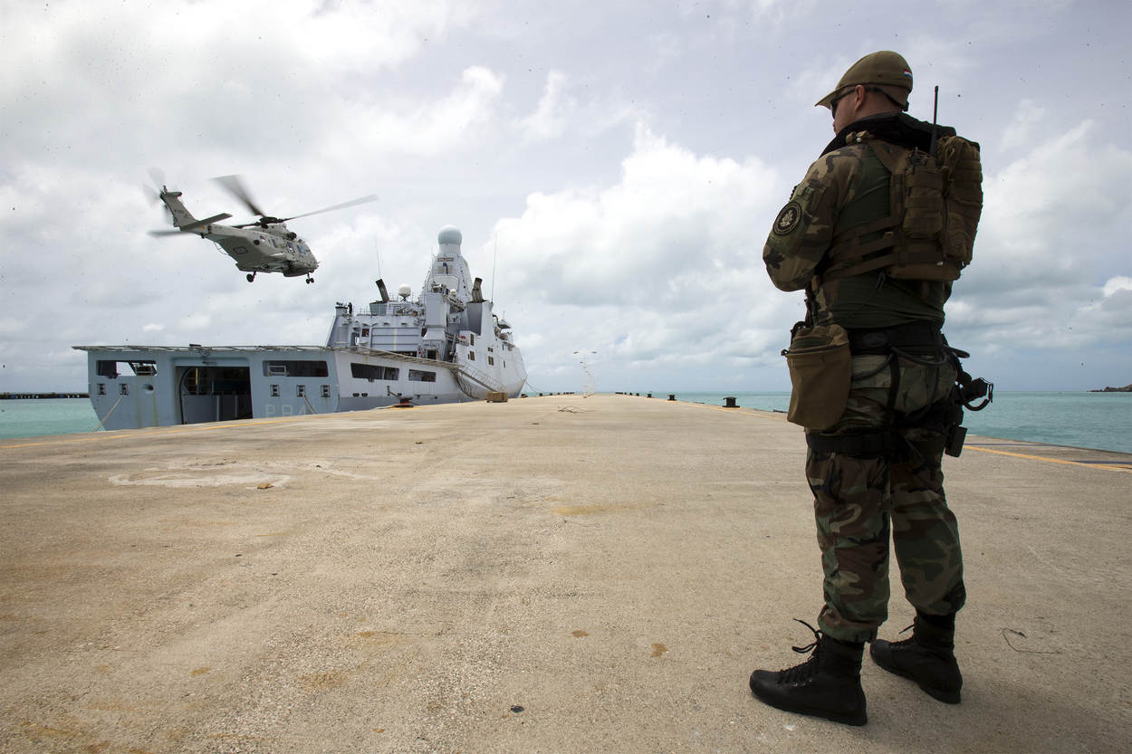 Als orkaan Irma over het eiland trekt, zijn ondertussen Zr. Ms. Zeeland (met bijna 90 man en een NH90 aan boord), de kustwacht-cutter Poema en Zr. Ms. Pelikaan met hulpgoederen en 50 landmachtmilitairen van de Compagnie in de West al onderweg naar het noorden. “Zodanig gepland dat deze aankomen direct na de orkaan”, geeft De Vin aan. “Heel veel meer kun je van tevoren niet doen.