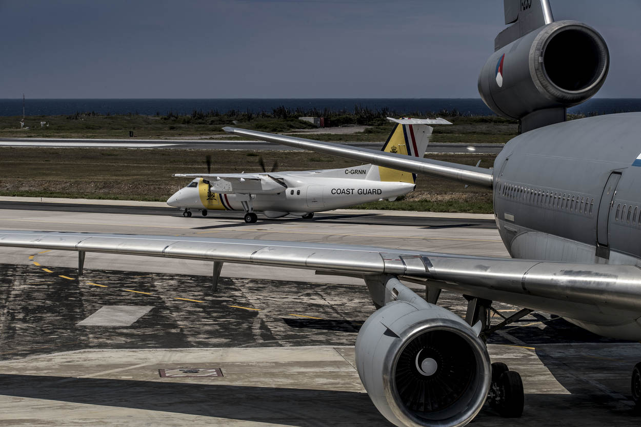Het beeld van Curaçao als logistiek hub. Een KDC-10 van de luchtmacht onderhoudt de lijn met Nederland, een Dash-8 van de Kustwacht die met Sint-Maarten