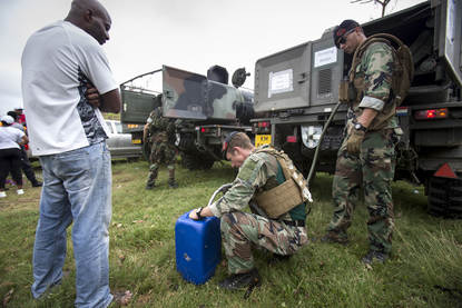 C-ZMCARIB heeft de beschikking over alle militaire middelen in het gebied. “Of dat voldoende is, kun je van tevoren moeilijk inschatten. Op Sint-Maarten bijvoorbeeld zit standaard een detachement van 26 mariniers dat met een getraind orkaanplan afdoende moet zijn voor orkanen van kracht 1 tot en met 3. En toen kwam er een wat grotere aan... In eerste instantie staat-ie te boek als ‘major’, maar is nog niet bekend hóe groot-ie wordt. Na het bijstandsverzoek besloten we mariniers van de Benedenwindse Eilanden te gaan inbrengen: 13 op zowel Saba als Sint-Eustatius en ruim 70 op Sint-Maarten. We hebben tot de laatste gelegenheid vóór passage van Irma militairen op de eilanden afgezet.”