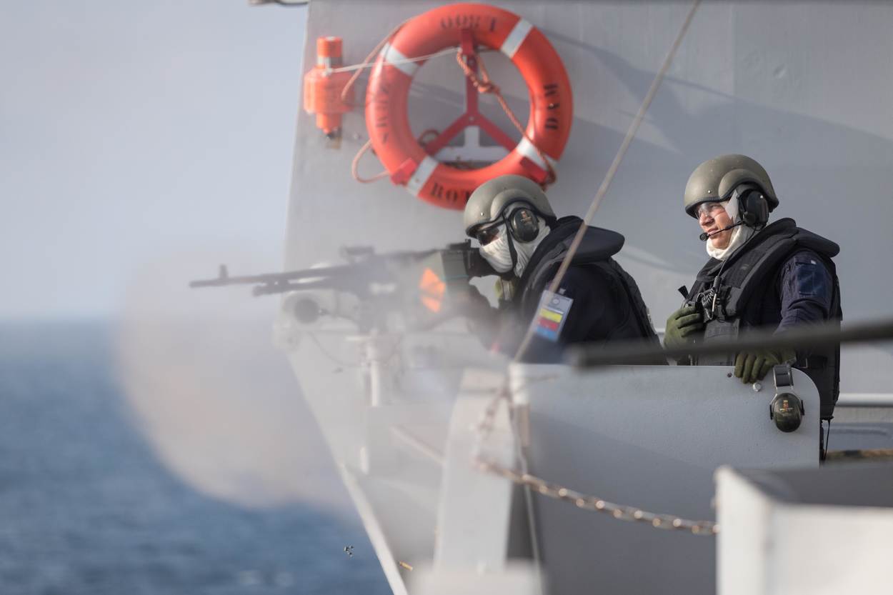 Naast het helikopterteam, zijn er nog andere ‘exoten’ aan boord van het marineschip. De belangrijkste taak van het Enhanced Boarding Element (EBE), bijvoorbeeld, is counter piracy. “Als piraten een schip kapen, is het aan ons om de bemanning te bevrijden”, vertelt commandant eerste luitenant der mariniers Frank van den Berg. “Dat is het hoogste geweldspectrum waarin we werken. Verder beveiligen we het team dat met FRISC’s en de snelle Zweedse CB90’s de friendly approaches uitvoeren en geven we trainingen aan de lokale kustwacht. Op het moment dat we het missiegebied uitvaren, trainen we onszelf fysiek en tactisch om op niveau te blijven. Zo schieten we aan dek en oefenen we met de boordwapens.”