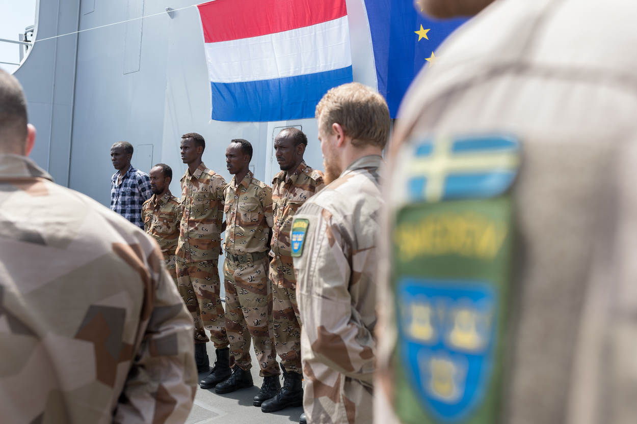 Tijdens het dieptepunt in 2011 kaapten piraten nog 32 schepen en hielden ze 730 mensen gegijzeld. Meer dan 1.100 verdachten werden overgedragen aan justitie. Dankzij de inzet tijdens missies Atalanta (EU) en Ocean Shield (NAVO) kon handelsverkeer veiliger langs Somalië varen. Maar sinds 2014 hebben de ingezette marineschepen geen piraat meer gevangen. “De criminaliteit is teruggedrongen naar de kust. Toch varen we hier niet voor niets”, meent kapitein-ter-zee Harold Liebregs. Volgens de commandant van de Rotterdam hebben de zeerovers andere lucratieve manieren gevonden om te ontsnappen aan armoede, werkloosheid en honger: “Zij houden zich tegenwoordig meer bezig met wapen-, drugs- en mensensmokkel. Verder verkopen ze bijvoorbeeld visserijvergunningen tegen extreem hoge bedragen. Alleen als het hen echt gemakkelijk wordt gemaakt, wagen ze nog een poging om schepen te kapen.”