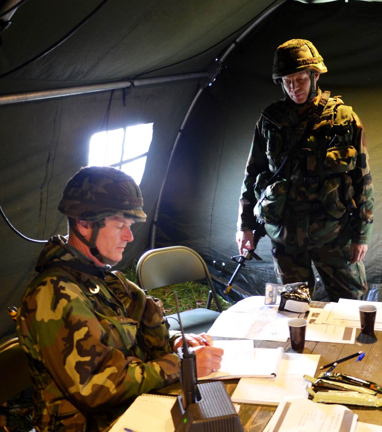 Ruim 100 Reservisten Militaire Taken (RMT) traden op de vrijdag aan. Mannen en vrouwen met een burgerbaan of eigen bedrijf, als reservist verbonden met hun voormalige werkgever. “Om dit te doen naast je normale werk en je gezinsleven, is een heel leuke afwisseling en je bent weer even terug op het oude nest”, aldus een deelnemende oud-marinier. “Anderen zijn in het weekend met voetbal bezig; ik ben met de reservisten op stap.”