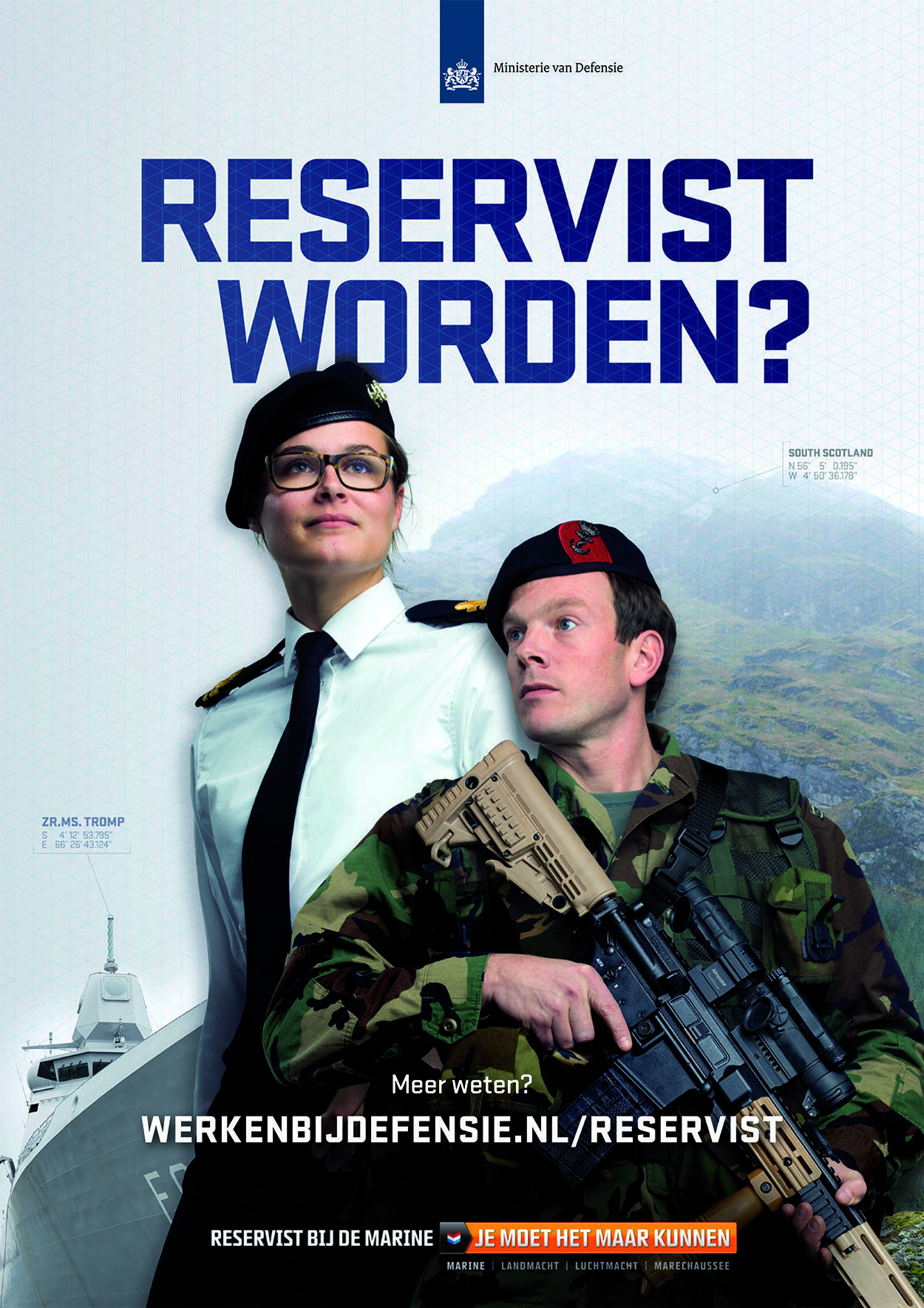 Voor meer informatie over de vele mogelijkheden om reservist te worden bij de Koninklijke Marine, ga naar https://werkenbijdefensie.nl/krijgsmachtdelen/marine/vakgebieden/reservist-marine.html en meldt je aan voor een voorlichting.