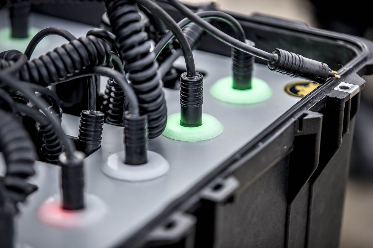 Met een budget van € 1.250 ging Schilder aan de slag. “Ik maakte eerst een prototype van hout en goot deze daarna in de juiste vorm.” De duikinstructeur betrok het Marine Innovatie Cluster van de afdeling DMI erbij. Een slimme zet, want stagiair Max Nijpels wist wel raad met het idee. “We hadden speciale laders nodig die automatisch stoppen na 4 uur laden. Na lang zoeken hebben we ze gevonden”, glundert Nijpels nog zichtbaar van trots. “We bestelden er 14 en bouwden deze in. Ik programmeerde printplaatjes die er voor zorgen dat er groene en rode lampjes oplichten. Hierdoor kunnen we het laadproces monitoren. Èn, de slimme lader schakelt automatisch uit zonder de accu te overbelasten. Precies wat we wilden.”