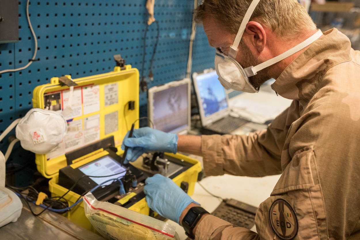 Richard: “Op het kamp doen we onderzoek naar grondmonsters, slagsnoeren, knopen en andere zaken die na een aanslag te vinden zijn. Dit onderzoek doen we ook voor de Franse operatie Barkhane en UNMAS, de VN anti-mijnen organisatie, die ook in Mali actief zijn.”