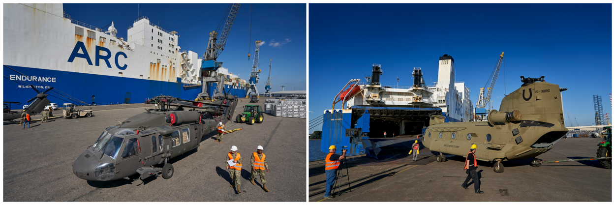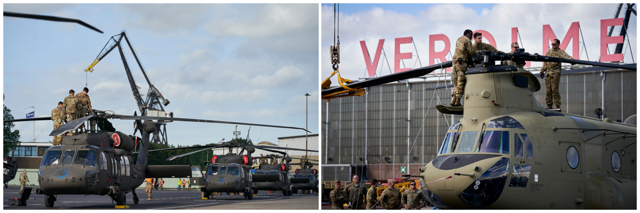 Terwijl een enorm containerschip op 20 juni de Rotterdamse haven invaart, houden diverse paren ogen het vaartuig scherp in de gaten. Sommige direct zichtbaar in FRISC's op het water, sommige verscholen op de kade. De Endurance vervoert namelijk een bijzondere lading. Niet zozeer de containers, 3-hoog op het dek. Nee, de meest opvallende lading huist in het ruim: 61 transporthelikopters, de helft van een vliegende US Army-brigade die in Europa komt oefenen.