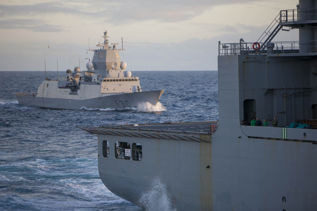 Doordat de Koninklijke Marine aan zowel eigen eenheden als aan buitenlandse NAVO-schepen brandstof levert, is ze is gehouden aan de vastgelegde 10 procentnorm. (Foto: SM Gerben van Es)