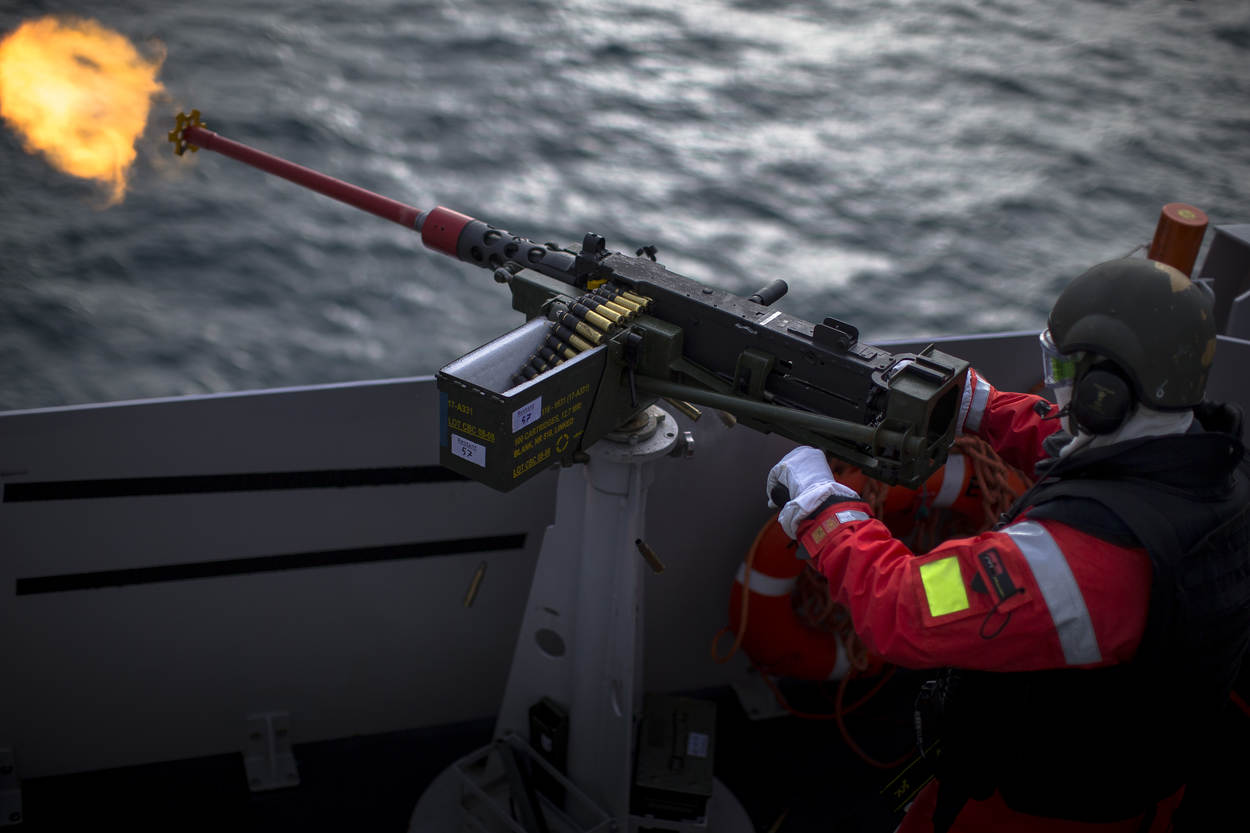 “Dekken, dekken, dekken over stuurboord”, schalt het door de luidsprekers. De spanning die luitenant ter zee 1 William van der Geest via de intercom weet over te brengen, is voelbaar. Aan boord leidt het Hoofd Operationele Dienst de verdediging. Op het bovendek komt het snelvuurkanon Goalkeeper hoorbaar razendsnel in positie. Op wat klein kaliber mitrailleurs na, heeft de Johan de Witt niet meer bewapening. Maar het Landing Platform Dock weet zich gesteund door 5 fregatten, die eveneens bij FOST oefenen. “De Britse trainingsorganisatie is in staat om 5 tot 7 schepen tegelijk te trainen”, begint Netherlands Liaison Officer FOST kapitein-luitenant ter zee George Pastoor.