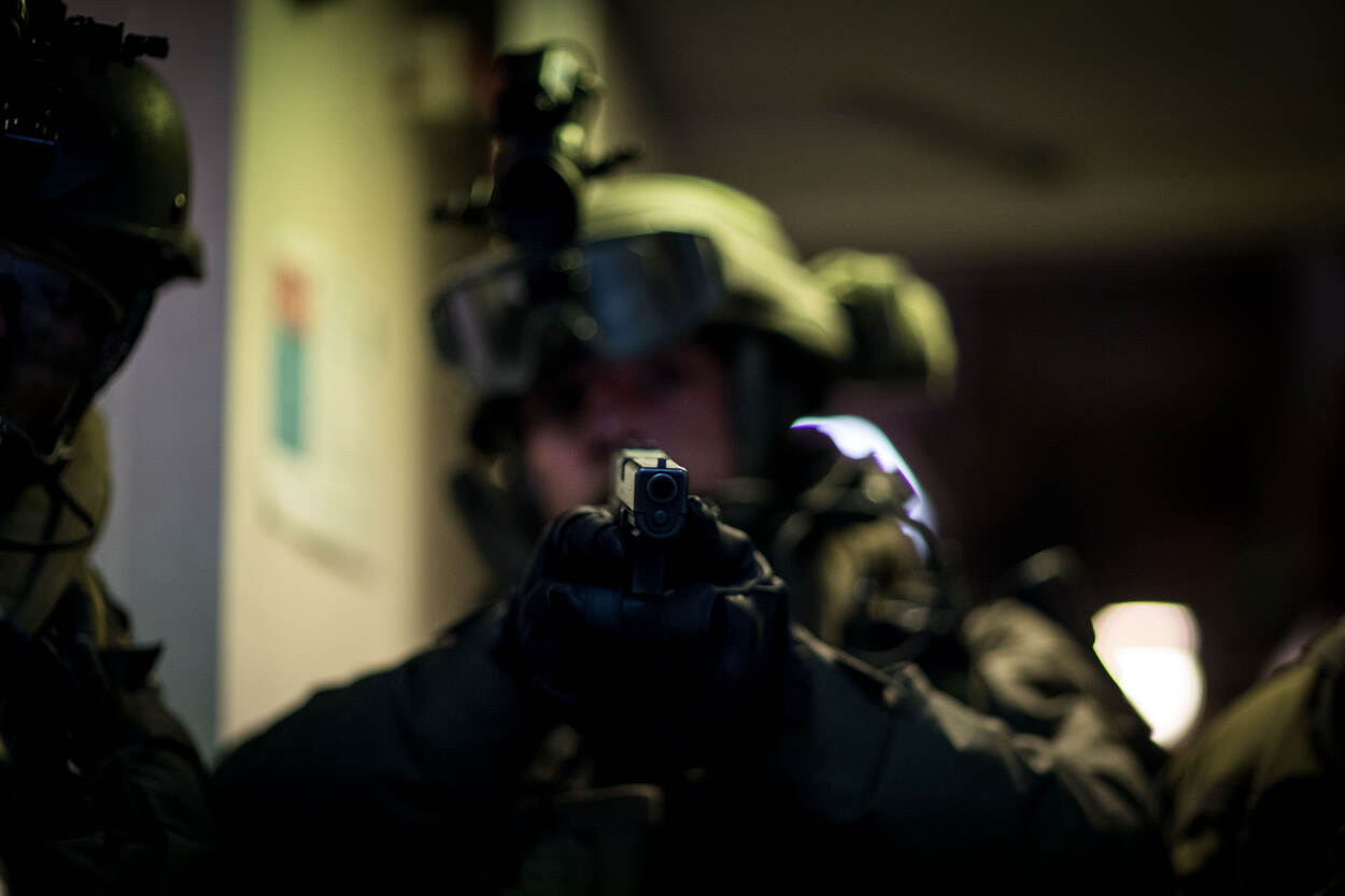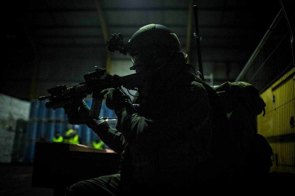 “’s Avonds viel ik als tweede man de loods binnen in Blyth. Toen we bij de plek aankwamen was er meteen vuurcontact. En ook in de loods was het raak: meerdere vuurwapens, flashbangs die afgingen. Een gecontroleerde chaos wordt het dan. Vuur van alle kanten, maar je moet helder blijven nadenken.”