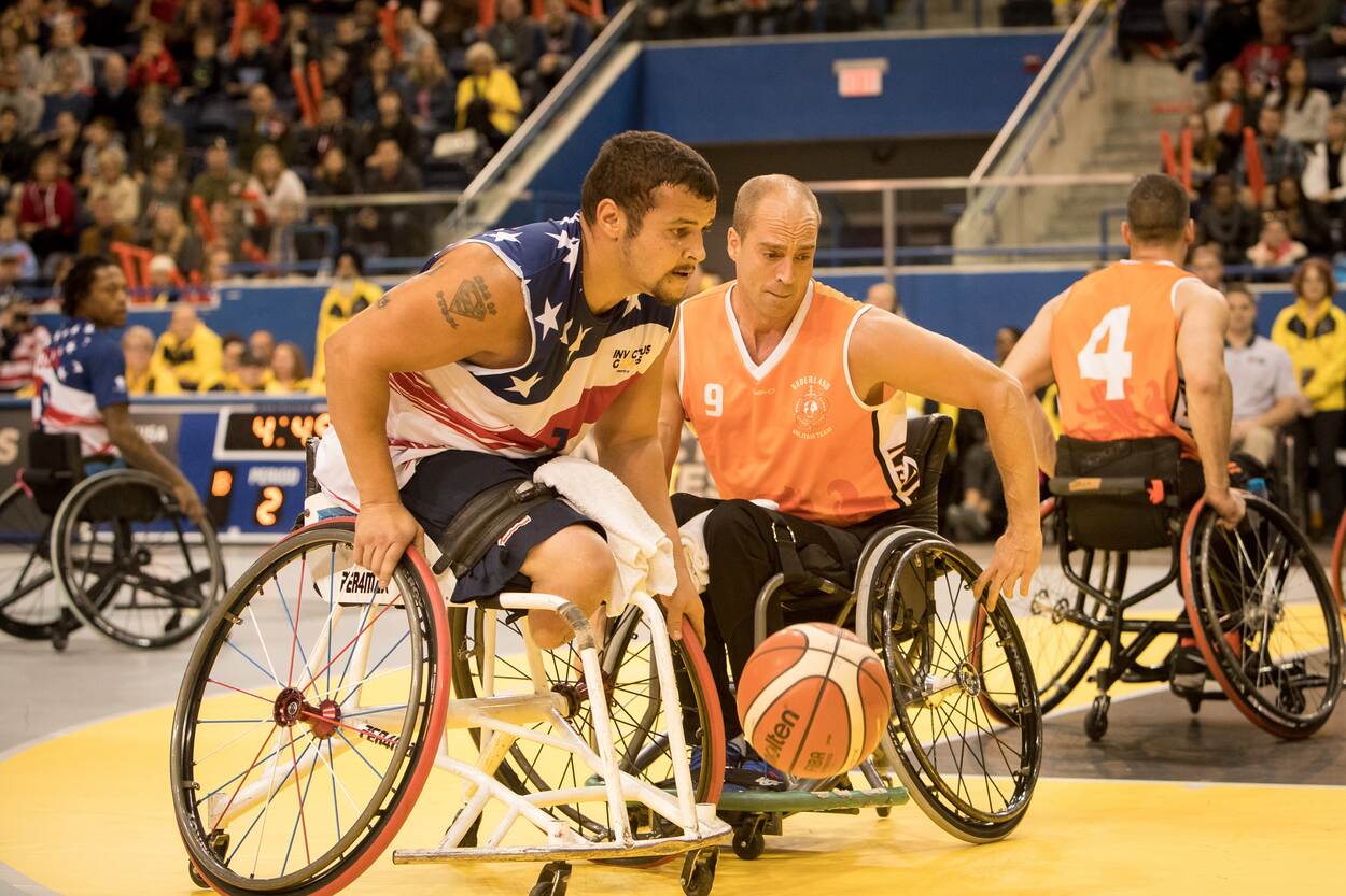 En dan is er natuurlijk het rolstoelbasketbal dat hem veel brengt. Het zorgt ook voor een terugkeer bij Defensie. Een aantal oud-militaire toppers wilde in 2017 een team vormen voor de Invictus Games in Canada. “Dat was wel een dingetje; ik had Defensie 13 jaar daarvoor uit mijn hoofd verbannen.” Hij vond met lotgenoten als Marc van de Kuilen, Walter Groen en Jack Pastora niet alleen waardering, maar vooral erkenning. “Er is vorig jaar bij de Invictus Games in Sydney een foto gemaakt van de 4 (oud-)mariniers die meededen. Ik aarzelde aanvankelijk of ik dat wel wilde, maar de andere mariniers trokken me erbij. Dat voelde heel goed.”