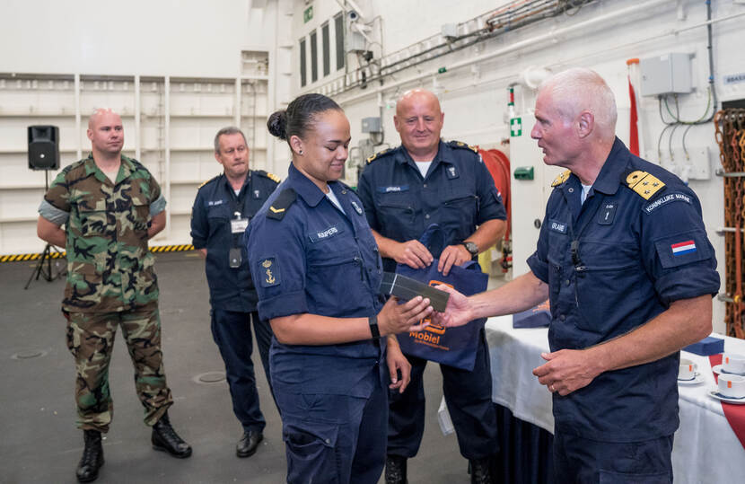 De eerste Samsung S10 diensttelefoons zijn officieel in gebruik genomen. Aan boord van Zr. Ms. Karel Doorman reikte Commandant Zeestrijdkrachten vice-admiraal Rob Kramer de splinternieuwe toestellen uit aan 3 CZSK-medewerkers. “Het moet makkelijker, sneller en effectiever.”