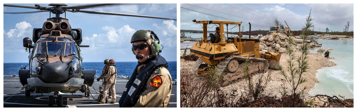 11 september kwamen de militairen aan in het volledig geïsoleerde gebied. Het vliegveld onder water, havens onbruikbaar. De militaire missie: Disaster Relief Bahamas. Van de Sande: “Ons voordeel: wij konden alles doen vanaf zee, met heli’s en landingsvaartuigen.”