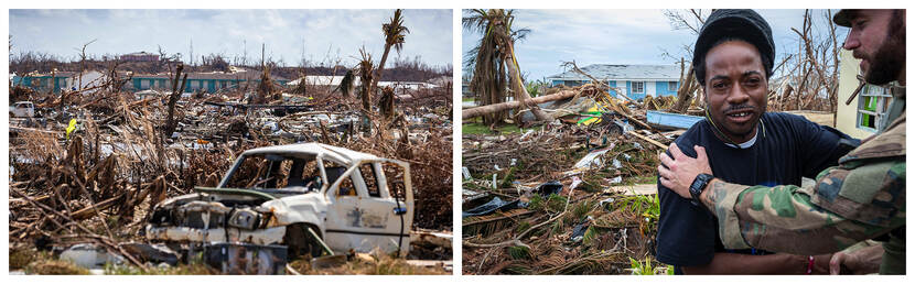Begin september werd de eilandengroep getroffen door ‘Dorian’. De zwaarste orkaan die de Bahama’s ooit trof, met windsnelheden tot bijna 300 kilometer per uur. Abaco, het eiland ten oosten van Grand Bahama, werd zwaar getroffen door het natuurgeweld. Huizen gereduceerd tot puin, vanaf hun fundering weggevaagd. Het eiland bezaaid met voertuigen, containers en kleine bootjes. Stille getuigen van de megalomane kracht van de natuur.